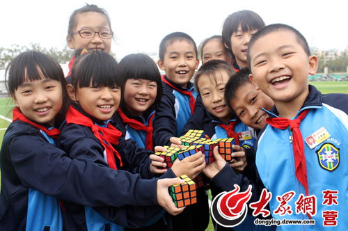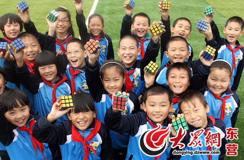 大众网东营10月30日讯(记者 王青青 通讯员 李江涛)2013年10月29日上午,东营区科达小学学生展示拼好的魔方。学校通过开设魔方课程,举办魔方速拧大赛等开展益智教育进校园,以此培养学生的科技兴趣、动手能力、空间思维能力和意志力。