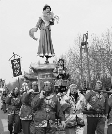 特色:“周村芯子”是一种独特的民间表演艺术形式,是明清时期周村老艺人从高跷和蜡烛灯台得到启发,依靠发达的织机技术集体创造的。其内容丰富宏伟壮观,每年正月十三、十四和十五将会在周村上演三天。芯子起源于明清时期的周村,后传至博山,后又传到淄川、张店和临淄等地,至今已有四百余年的历史。周村芯子已被列入为“中国国家级非物质文化遗产”。