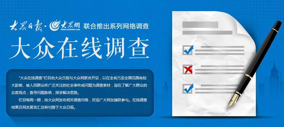 大众在线调查栏目每周一期,由大众网发布调查问卷,调查结果及网友留言汇总将在本报“今日关注”版刊登。